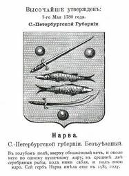 | Keywords: Нарва 1780 из Винклера.jpg Official Russian Empire coat of arms Narva Ге б Российской Импе ии безъуездного го ода а ва СПб губе нии с официальным описанием в Ге бовнике Винкле а П П фон-Винкле Ге бы го одов губе ний областей и посадов Российской Импе ии внесенные в Полное Соб ание законов с 1649 по 1900 год Дозволено цензу ою С -Пете бу г 20 Июля 1899 года Издание книгото говца Ив Ив Иванова С -Пете бу г Типог афия И Комелова П яжка д 3 1899 \ Scanned by Vizu 1780 \ 1899 published П П фон Винкле \ Pavel von Vinkler PD-old PD-RusEmpire PD-RU-exempt coats of arms Gerbovnik Vinklera - City CoAs Coats of arms from Narva |