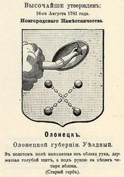 | Keywords: Олонецк 1781 из Винклера.jpg ru Ге б Олонецка с официальным описанием в Ге бовнике Винкле а adopted 1781-08-16 O S published 1899 File Олекминск Олонецк Ольвиополь Омск из Винкле а jpg П П фон Винкле PD-RusEmpire Gerbovnik Vinklera - City CoAs Олонецк Uploaded with UploadWizard Coats of arms of Olonets Governorate Hands in heraldry Weapons in heraldry |