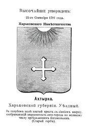 | Keywords: Хар губ Ахтырка 1781 из Винклера.jpg Official Russian Empire coat of arms Akhtyrka Ге б уездного го ода Российской Импе ии Ахты ка Ха ьковской губе нии с официальным описанием в Ге бовнике Винкле а П П фон-Винкле Ге бы го одов губе ний областей и посадов Российской Импе ии внесенные в Полное Соб ание законов с 1649 по 1900 год Дозволено цензу ою С -Пете бу г 20 Июля 1899 года Издание книгото говца Ив Ив Иванова С -Пете бу г Типог афия И Комелова П яжка д 3 1899 \ Scanned paper book 1775 Ге бовник Ще батова /1781 утве ждён / 1899 published П П фон Винкле \ Pavel von Vinkler PD-old PD-RusEmpire PD-RU-exempt coats of arms Gerbovnik Vinklera - City CoAs Axты ka Coats of arms of Okhtyrka Coats of arms of cities in Kharkov Governorate Sun in heraldry Crosses in heraldry 1781 in Kharkov Governorate |