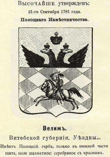 Keywords: Велиж 1781 из Винклера.jpg Official Russian Empire coat of arms Ге б Российской Импе ии уездного го ода Велиж Витебской губе нии в 1781 - Полоцкого наместничества с официальным описанием в Ге бовнике Винкле а П П фон-Винкле Ге бы го одов губе ний областей и посадов Российской Импе ии внесенные в Полное Соб ание законов с 1649 по 1900 год Дозволено цензу ою С -Пете бу г 20 Июля 1899 года Издание книгото говца Ив Ив Иванова С -Пете бу г Типог афия И Комелова П яжка д 3 1899 \ Scanned by Vizu 1781 \ 1899 published П П фон Винкле \ Pavel von Vinkler PD-old PD-RusEmpire PD-RU-exempt coats of arms Gerbovnik Vinklera - City CoAs Coats of arms of Vitebsk Governorate Eagles in heraldry Historical images of Pahonia |