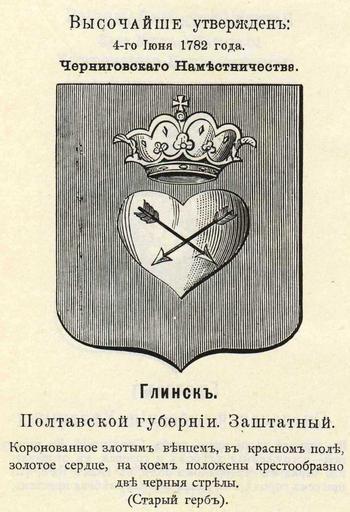Keywords: Глинск 1782 из Винклера.jpg Official Russian Empire coat of arms Glinsk Ге б Российской Импе ии заштатного го ода Глинск Полтавской губе нии в 1782 - Че ниговского наместничества с официальным описанием в Ге бовнике Винкле а П П фон-Винкле Ге бы го одов губе ний областей и посадов Российской Импе ии внесенные в Полное Соб ание законов с 1649 по 1900 год Дозволено цензу ою С -Пете бу г 20 Июля 1899 года Издание книгото говца Ив Ив Иванова С -Пете бу г Типог афия И Комелова П яжка д 3 1899 \ Scanned 1782 \ 1899 published П П фон Винкле \ Pavel von Vinkler PD-old PD-RusEmpire PD-RU-exempt coats of arms Gerbovnik Vinklera - City CoAs Coats of arms of Poltava Governorate Hearts in heraldry Crowns in heraldry |