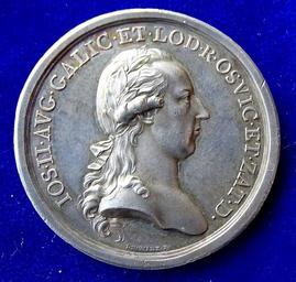 | Keywords: 1782 Medal Constitution of the Parliament in Galicia, Poland, obverse.jpg en In 1772 with the partition of the Polish-Lithuanian Commonwealth the south-eastern part of the former Polish-Lithuanian Commonwealth was awarded to the Habsburg Empress Maria-Theresa In 1782 a parliament was constituted by emperor Joseph II Known as Galicia and Lodomeria it became the largest most populous and northernmost province of the Austrian Empire until the dissolution of that monarchy at the end of World War I in 1918 when it ceased to exist as a geographic entity Silver medallion d 43 mm 26 23 g Ag Joseph II Holy Roman Emperor 1764 - 1790 Head r around IOS II AUG ET LOD R OSVIC ET ZAT D / The personification of Galicia r shaking hands with a Roman lawyer r Curved above CONVENTV ORDIN PERPETVO IN GALIZIA ET LOD CONSTITVTO In exergue MDCCLXXXII Slg Julius 2779; Forrer VI p 567 Medallist I N Johann Nepomuk Wirt 1753 Wien - 1811 Vienna Condition EXTREMELY FINE+ beautiful old patina 1782-12-31 own Berlin-George other versions cc-by-sa-4 0 PD-old-100 PD-1923 Medals of Austria 1782 medals Joseph II Holy Roman Emperor on medals |