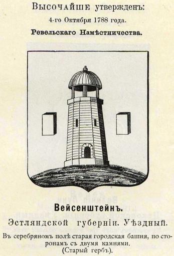 | Keywords: Вейсенштейн 1788 из Винклера.jpg Official Russian Empire coat of arms Veisenshtein Гласный ге б Российской Импе ии уездного го ода Вейсенштейн нем Белый камень Эстляндской губе нии в 1788 - Ревельского наместничества с официальным описанием в Ге бовнике Винкле а П П фон-Винкле Ге бы го одов губе ний областей и посадов Российской Импе ии внесенные в Полное Соб ание законов с 1649 по 1900 год Дозволено цензу ою С -Пете бу г 20 Июля 1899 года Издание книгото говца Ив Ив Иванова С -Пете бу г Типог афия И Комелова П яжка д 3 1899 \ Scanned by Vizu 1788 \ 1899 published П П фон Винкле \ Pavel von Vinkler PD-old PD-RusEmpire PD-RU-exempt coats of arms <references/> Gerbovnik Vinklera - City CoAs Coats of arms of Estlandia Governorate Towers in heraldry Russian canting arms Kreis Jerwen |