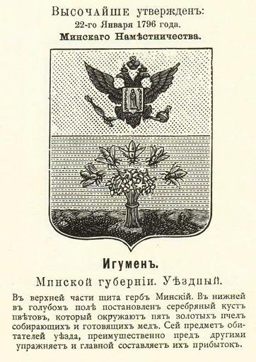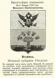 | Keywords: Игумен 1796 из Винклера.jpg Official Russian Empire Igumen coat of arms Ге б уездного го ода Игумен инской губе нии Российской Импе ии с официальным описанием в Ге бовнике Павла Пет овича Винкле а П П фон-Винкле Ге бы го одов губе ний областей и посадов Российской Импе ии внесенные в Полное Соб ание законов с 1649 по 1900 год Дозволено цензу ою С -Пете бу г 20 Июля 1899 года Издание книгото говца Ив Ив Иванова С -Пете бу г Типог афия И Комелова П яжка д 3 1899 / Scanned 1796 / 1899 published П П фон Винкле / Pavel von Vinkler PD-old PD-RusEmpire PD-RU-exempt coats of arms Gerbovnik Vinklera - City CoAs Coats of arms of Minsk Governorate |