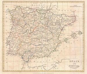| Keywords: 1799 Clement Cruttwell Map of Spain and Portugal - Geographicus - Spain-cruttwell-1799.jpg A fine 1799 map of Spain and Portugal by the English map publisher Clement Cruttwell Map shows the provinces as they appeared at this time including the islands of Majorca Minorca and Ibiza Yvica The most prominent provinces are New and Old Castile at the center of the map A former kingdom the areas eventually merged with their neighbors and today comprise the autonomous region of Castile y León in the northwest and Castilla-La Mancha and Madrid in the center and south of the country Many of the provinces appear in their modern configuration Outline color and fine copper plate engraving in the minimalist English style prevalent in the late 18th and early 19th centuries Drawn by G G and J Robinson of Paternoster Row London for Clement Cruttwell's 1799 Atlas to Cruttwell's Gazetteer 1799 dated Size in 16 14 object history credit line accession number Spain-cruttwell-1799 Cruttwell C <i>Atlas to Cruttwell's Gazetteer</i> 1799 Geographicus-source PD-Art-100 Old maps of the Iberian Peninsula 1799 maps Maps by Clement Cruttwell English language maps of Europe 1799 in Spain |