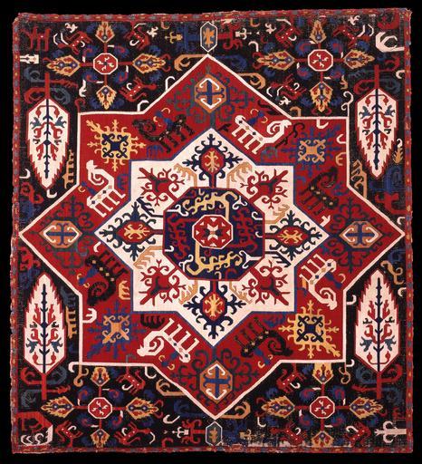 | Keywords: 17.17-37-1969-Kaukasisk-broderi.jpg en Caucasus heard until Gulistan-peace from 1813 to the Persian Empire Here was carried out in the 18th century a series of embroideries like was shaped over a central polygon which in this magnificent specimen In addition stylized vegetal ornaments trees and animals and more rarely human figures With their ornamentation and rich but a little gloomy color scheme can recall Caucasian dragon carpets based on nomadic culture world Like them stand embroideries out from the more sophisticated and internationally oriented hofkunst that was produced in the Iranian fa گلیم قلاب دوزی شده قفقازی متعلق به قرن نوزدهم میلادی طرحهای سوزن دوزی شده پیرامون شکلی هشت ضلعی مرکزی گیاهان ودرختان تزئینی و همچنین حیوانات و اشکال انسان نما نیز در طرح ها دیده می شود رنگ های کدر گلیم بازگو کننده فرشهای دارای موجود افسانه ای قفقازی است که فرهنگ و جامعه بیابانگردی را یادآور می شود منطقه قفقاز پیش از عهدنامه گلستان جزء پادشاهی ایران محسوب می شد 18th Institution Davids Samling http //www davidmus dk/assets/428/17 17-37-1969-Kaukasisk-broderi jpg other versions Assessments 1 1 17 17-37-1969-Kaukasisk-broderi jpg cc-zero PD-old The David Collection Rectangular objects Goats in art Flowers in tapestry Trees in art Uploaded with UploadWizard Art of Iran Caucasus |