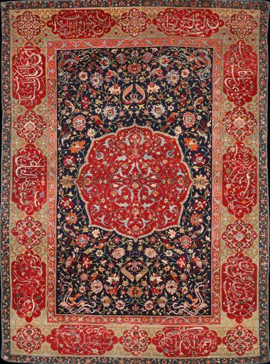 | Keywords: 17-9 3-1964-Saltingtaeppe Photo-Pernille-Klemp-f.jpg Artwork en So-called Salting carpet wool silk and metal thread about 1600 226 × 162 cm About a ottepas-shaped medallion with arabesques is a rectangular panel with phoenixes and other exotic birds in tendrils with Chinese-inspired flowers The broadest of the three surrounding borders have ten fields with Persian verses written in Nastaliq - a mirror The color scheme is very varied and supplemented with silver thread The rug if decoration clearly reflects the Safavid court style around 1600 belongs to a group which for a time thought was Turkish copies 19th century older Persian originals This assumption has now been disproved by historical stylistic and especially technological arguments فرش ایرانی بیانگر هنر صفوی حدود ۱۶۰۰ میلادی در این فرش خط نستعلیق به کار برده شده است ابعاد این فرش 226 در 162 سانتی متر می باشد circa 1600 Institution Davids Samling http //www davidmus dk/assets/300/17-9_3-1964-Saltingtaeppe_Photo-Pernille-Klemp-f jpg other versions Assessments 1 cc-zero PD-old The David Collection Rectangular objects Birds in art Flowers in art Nastaliq Uploaded with UploadWizard Persian carpet Safavid art |