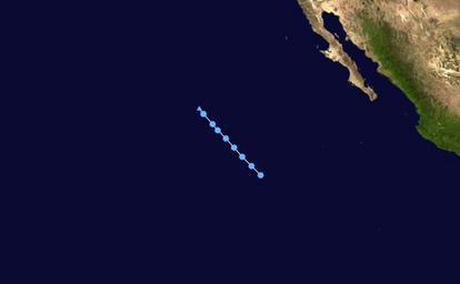 | Keywords: 17-E 1993 track.png Track map of Tropical Depression Seventeen-E of the 1993 Pacific hurricane season The points show the location of the storm at 6-hour intervals The colour represents the storm's maximum sustained wind speeds as classified in the Saffir-Simpson Hurricane Scale see below and the shape of the data points represent the nature of the storm according to the legend below User Nilfanion/Tc/T Created using Wikipedia WikiProject Tropical cyclones/Tracks The background image is from NASA Tracking data is from the National Hurricane Center http //www nhc noaa gov/archive/storm_wallets/epacific/ep1993/td3e/prenhc/ 2011-03-06 Cyclonebiskit Cyclonebiskit PD-USGov-NASA Tropical cyclone tracks Pacific hurricane tracks 1993 Pacific hurricane season |