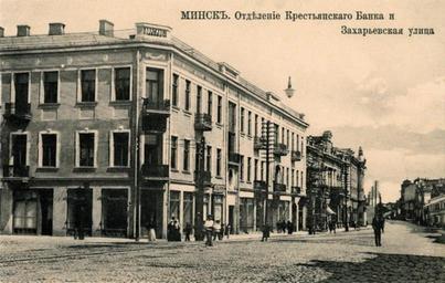 | Keywords: Вуліца Валадарскага, 17 (XX).jpg Будынак быў на ск ыжаваньні вуліц Заха 'еўскай і Се пухаўскай Валада скага у якім азмяшчалася адзяленне ммнскага сялянскага пазямельнага банка Паштоўка пачатку 20-га стагодззя У Ліхадзедаў інск Пада ожжа ў часе інск Тэхналёгія 2008г http //www oldmensk net/publ/vulicy/valadarskaga/vul_valadarskaga/39-1-0-24 century 20 PD-old Valadarskaha street Minsk | ||||