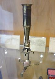 | Keywords: 1800-1820, Gould-style microscope, unknown maker, probably England - Golub Collection of Antique Microscopes - DSC04742.JPG en Microscope in the Golub Collection of Antique Microscopes exhibited at the University of California Berkeley - Berkeley California USA This microscope is old enough so that its design is in the public domain Photography was permitted without restriction 2013-11-15 13 59 34 own Daderot other versions cc-zero Microscopes in the Golub Collection of Antique Microscopes Uploaded with UploadWizard |