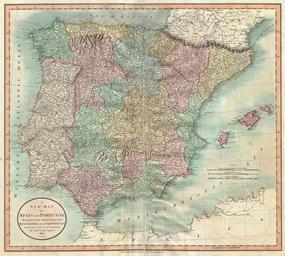 | Keywords: 1801 Cary Map of Spain and Portugal - Geographicus - SpainPortugal-cary-1801.jpg An extremely attractive example of John Cary ™s 1801 map of Spain and Portugal Consists of the entire region of Iberia including the islands of Minorca Majorca and Ibiza parts of northern Africa and Parts of France Highly detailed with color coding according to region All in all one of the most interesting and attractive atlas maps Iberia to appear in first years of the 19th century Prepared in 1801 by John Cary for issue in his magnificent 1808 New Universal Atlas 1801 dated Size in 20 5 18 5 object history credit line accession number SpainPortugal-cary-1801 Cary John <i>Cary's New Universal Atlas containing distinct maps of all the principal states and kingdoms throughout the World From the latest and best authorities extant </i> London Printed for J Cary Engraver and Map-seller No 181 near Norfolk Street Strand 1808 Geographicus-source PD-old-100 Maps by John Cary 1801 maps Old maps of the Iberian Peninsula |