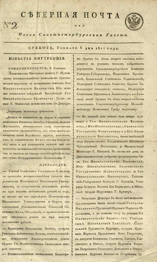 | Keywords: Газета Северная почта, 1817, номер 2.jpg ru Газета Севе ная почта 1817 2 2016-04-24 20 36 50 Газета Севе ная почта 1817 2 Авто неизвестен other versions PD-old-70-1923 Newspapers of Russia 1817 Title pages of newspapers from Russia Newspapers published in Saint Petersburg |