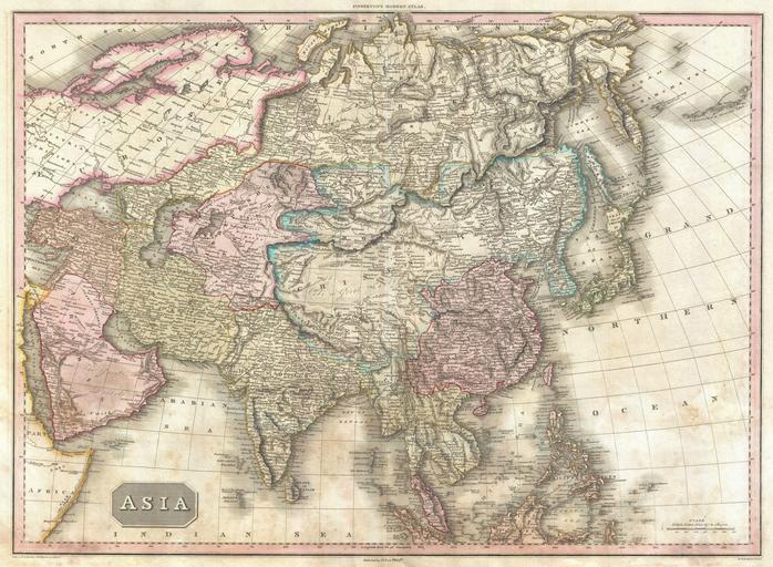 Keywords: 1818 Pinkerton Map of Asia - Geographicus - Asia-pinkerton-1818.jpg This is John Pinkerton's stunning 1818 map of Asia Covers from the Mediterranean to the Aleutian Islands and from the Arctic to the Equator This beautifully rendered map is truly a masterpiece of engraving with mountain ranges lakes deserts and rivers excited with such precision that the result appears almost three dimensional Pinkerton injections astounding detail throughout with countless towns cities geographical features rivers islands and bodies of water noted In desert regions fresh water sources are noted In the seas certain shoals and undersea are included In China and Manchuria the Great Wall appears Singapore islands is shown but not specifically named The Liakhov Islands in northern Siberia which some believed to be entirely composed of fossil mammoth ivory are noted as Shore Discovered by Herders All in all one of the most remarkable maps of Asia to appear in the 19th century Drawn by L Herbert and engraved by Samuel Neele under the direction of John Pinkerton This map was issued in the scarce American edition of Pinkerton ™s Modern Atlas published by Thomas Dobson Co of Philadelphia in 1818 1818 undated Size in 28 21 object history credit line accession number Asia-pinkerton-1818 Pinkerton J <i>A Modern Atlas from the Lates and Best Authorities Exhibiting the Various Divisions of the World with its chief Empires Kingdoms and States; in Sixty Maps carefully reduced from the Larges and Most Authentic Sources </i> 1818 Philadelphia Thomas Dobson Edition Geographicus-source PD-old-100 Maps by John Pinkerton Old maps of Asia 1818 maps |