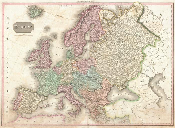 Keywords: 1818 Pinkerton Map of of Europe - Geographicus - Europe-pinkerton-1818.jpg Pinkerton's extraordinary 1818 map of Europe Covers Europe at the beginning of the 19th century Offers considerable detail with political divisions and color coding at the regional level Identifies cities towns castles swamps mountains and river ways Title plate in the upper left quadrant A mile scale in British Statute Miles also appears in the upper left quadrant Drawn by L Herbert and engraved by Samuel Neele under the direction of John Pinkerton This map comes from the scarce American edition of Pinkerton ™s Modern Atlas published by Thomas Dobson Co of Philadelphia in 1818 1818 undated Size in 28 20 5 object history credit line accession number Europe-pinkerton-1818 Pinkerton J <i>A Modern Atlas from the Lates and Best Authorities Exhibiting the Various Divisions of the World with its chief Empires Kingdoms and States; in Sixty Maps carefully reduced from the Larges and Most Authentic Sources </i> 1818 Philadelphia Thomas Dobson Edition Geographicus-source PD-old-100 Maps by John Pinkerton Old maps of Europe 1818 maps |