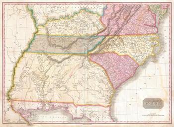 | Keywords: 1818 Pinkerton Map of the Southeastern United States, Carolina, Georgia, Virginia - Geographicus - USASouthernPart-pinkerton-1818.jpg A rare and important 1818 map of the southeastern part of the United States Depicts from the Mississippi River eastward to the Pacific extends north as far as Delaware and south as far as Florida and the Mississippi Delta This map was created during the transitional period of expansion shortly following the American Revolutionary War Shows Virginia Kentucky Tennessee North Carolina South Carolina and Georgia Predates the formation of Ohio Illinois Indiana and Alabama Florida was not yet part of the United States but would join one year after this map was printed in 1819 Most of this map is given over to describing and notating the various American Indian nations active west of the Appellation Mountains Notes the Creeks the Seminoles the Apalachi the Choctaw the Chickasaw and others Hunting grounds villages and fortifications are noted sometimes accompanied by the date in which they were destroyed Also identifies the Wabash Company the Jersey Company and the Illinois Company These land companies were formed during the colonial period to acquire sell and colonize American Indian lands just east of the Mississippi Drawn by L Herbert and engraved by Samuel Neele under the direction of John Pinkerton The map comes from the scarce American edition of Pinkerton ™s Modern Atlas published by Thomas Dobson Co of Philadelphia in 1818 1818 undated Size in 28 21 object history credit line accession number USASouthernPart-pinkerton-1818 Pinkerton J <i>A Modern Atlas from the Lates and Best Authorities Exhibiting the Various Divisions of the World with its chief Empires Kingdoms and States; in Sixty Maps carefully reduced from the Larges and Most Authentic Sources </i> 1818 Philadelphia Thomas Dobson Edition Geographicus-source PD-old-100 Maps by John Pinkerton Old maps of the United States 1818 maps |