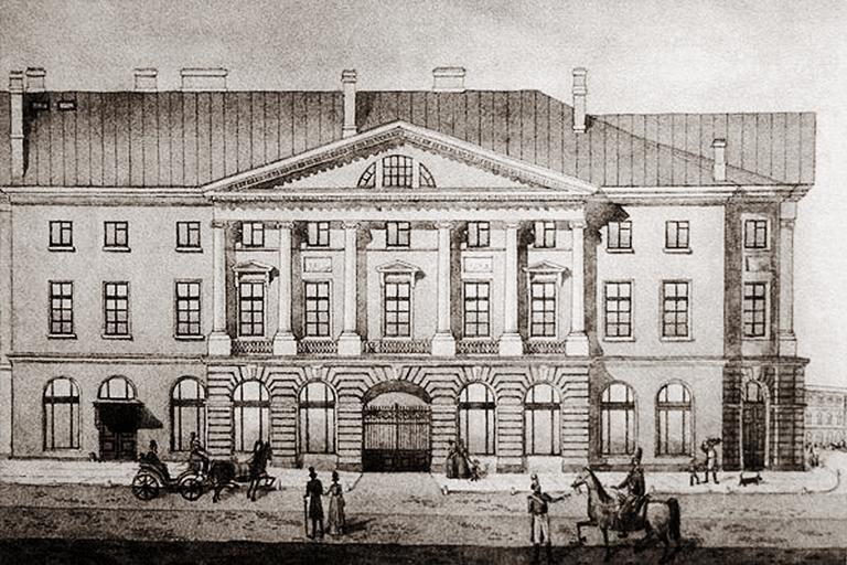 | Keywords: 1820s House with 4 collums Watercolor.jpg ru Дом с четы ьмя колоннадами Работа неизвестного художника 1820-е Скани ованная еп одукция фотог афии author Reproduction of 2D artwork in public domain other versions PD-old-100 Paintings of Saint Petersburg |
