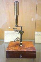| Keywords: 1825 circa, Gould-style compound microscope, unknown maker, unknown country - Golub Collection of Antique Microscopes - DSC04727.JPG en Microscope in the Golub Collection of Antique Microscopes exhibited at the University of California Berkeley - Berkeley California USA This microscope is old enough so that its design is in the public domain Photography was permitted without restriction 2013-11-15 13 57 53 own Daderot other versions cc-zero Microscopes in the Golub Collection of Antique Microscopes Uploaded with UploadWizard |