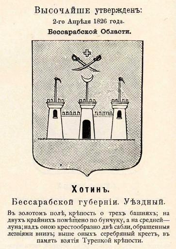 | Keywords: Хотин 1826 из Винклера.jpg Official Russian Empire coat of arms Hotin Гласный ге б лите а Х из сабель Российской Импе ии уездного го ода Хотин Бесса абской губе нии с официальным описанием в Ге бовнике Винкле а П П фон-Винкле Ге бы го одов губе ний областей и посадов Российской Импе ии внесенные в Полное Соб ание законов с 1649 по 1900 год Дозволено цензу ою С -Пете бу г 20 Июля 1899 года Издание книгото говца Ив Ив Иванова С -Пете бу г Типог афия И Комелова П яжка д 3 1899 \ Scanned 1826 \ 1899 published П П фон Винкле \ Pavel von Vinkler PD-old PD-RusEmpire PD-RU-exempt coats of arms <gallery> File Coat of arms of Hotin County Bessarabia Guberniya png File Coat of arms of Hotin County Bessarabia Guberniya svg </gallery> <references/> Gerbovnik Vinklera - City CoAs Coats of arms of Bessarabia Governorate Russian canting arms Crosses in heraldry Sabres in heraldry |