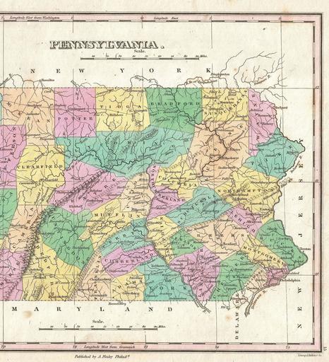 | Keywords: 1827 Finley Map of Eastern Pennsylvania - Geographicus - Pennsylvania-finley-1827.jpg Central Pennsylvania to Eastern Pennsylvania This version is produced as a blank 1827 Commons - File 1827 Finley Map of Pennsylvania - Geographicus - Pennsylvania-finley-1827 jpg Anthony Finley edited by User Fabartus PD-1923 other versions Marked up with terminuses of the Lehigh Canal and Delaware Canals and the Lehigh-Susquehanna Turnpike Susquehanna and Tioga Turnpike Susquehanna-Tioga Turnpike connecting Philadelphia to Lake Erie File 1827 Finley Map of Eastern Pennsylvania en-antd Lehigh-Susquehanna Susquehanna-Tioga Turnpike jpg Image appears below Marked up with emphasis added for Wagon Roads in this map series File 1827 Finley Map of Eastern Pennsylvania - Wagon Roads and Turnpikes png ---- A beautiful example of Finley's important 1827 map of Pennsylvania Depicts the state with moderate detail in Finley's classic minimalist style Shows river ways roads canals and some topographical features Offers color coding at the county level Title at top center Scale at bottom center Engraved by Young and Delleker for the 1827 edition of Anthony Finley's General Atlas <br /> The w Allegheny Plateau the Eastern drainage divide and the emphasis the cartographer placed on the Allegheny Front barrier range is obvious in this minimalist styled 19th century map <br />So lightly settled were the lands the cartographer has traced known <u>trails</u> likely proven wagon tracks primitive dirt roads throughout; with the exposed and unsettled lands the work clearly shows their convergence through the few climbable 'gaps in the Allegheny ' Front <br />Note this map is three years after the legislation authorizing the Allegheny Portage Railroad and the Main Line of Public Works and Pennyslvania Canal System that would connect Philadelphia to the Ohio River The portage railroad ascends one water gap due east of the mining town of Ebensburg PA which is ALONG the eastern side of Western Pennsylvania Ebensburg is a few miles west of the Kittanning Path Kittanning Gorge and the future site of Altoona PA 'Gaps in the Allegheny' term used in A History of Pennsylvania dated ca 1893 1827 undated Eastern Pennsylvania counties detail object history credit line accession number Finley Anthony <i>A New General Altas Comprising a Complete Set of Maps representing the Grand Divisions of the Globe Together with the several Empires Kingdoms and States in the World; Compiled from the Best Authorities and corrected by the Most Recent Discoveries</i> Philadelphia 1827 Geographicus-source PD-old-100 thumb left File 1827 Finley Map of Eastern Pennsylvania - Wagon Roads and Turnpikes png--marked up to show road network in late 1820s thumb File 1827 Finley Map of Eastern Pennsylvania en-antd Lehigh-Susquehanna Susquehanna-Tioga Turnpike jpg - with annotations of Lehigh Canal Delaware Canal and the Lehigh Delaware Valley to Lake Erie turnpikes in Pennsylvania Anthony Finley Maps by Anthony Finley 1827 maps Old maps of Pennsylvania User Fabartus/FABImage 1 |