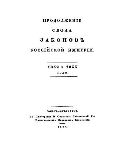 | Keywords: Продолжение Свода законов (1834)+.jpg ru П одолжение Свода законов Российской импе ии 1 янва я 1834 г Чистка листа - 2015-06-27 https //books google ru/books id h4NDAAAAcAAJ printsec frontcover hl ru source gbs_ge_summary_r cad 0 v onepage q f false Hausratte Tankist-777 other versions Custom license marker 2015 06 28 PD-old Uploaded with UploadWizard Law of the Russian Empire Raster images from Graphic Lab by Tankist-777 | ||||