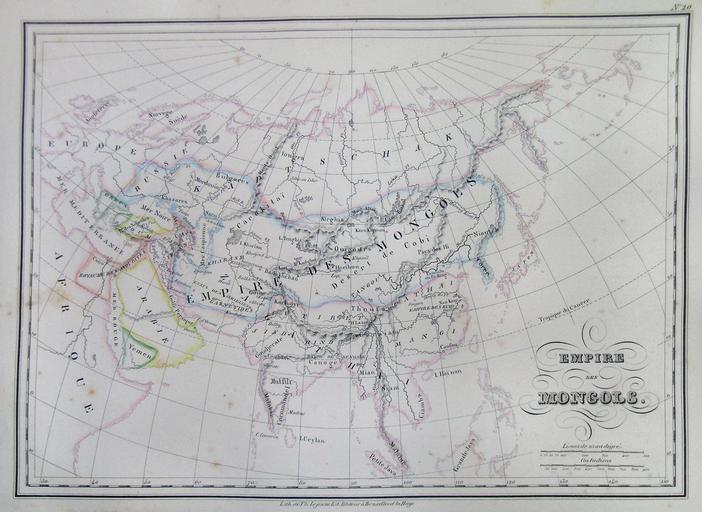 | Keywords: 1837 Malte-Brun Map of the Mongol Empire in Asia and Europe - Geographicus - AsiaMongol-mb-1837.jpg This is a beautiful 1837 hand colored map Europe and Asia under the domino of the Mongol Empire as established by the Golden Horde under Genghis Khan All text is in French 1837 Size in 12 9 object history credit line accession number AsiaMongol-mb-1837 Geographicus-source PD-art Old maps of Asia 1837 maps Victor Adolphe Malte-Brun Maps of the Mongol Empire Maps in French | ||||
