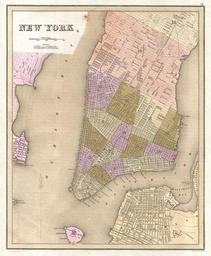 | Keywords: 1839 Bradford Map of New York City, New York - Geographicus - NewYorkCity-bradford-1839.jpg This is Thomas Bradford's important 1839 map of New York City Bradford's plan covers Manhattan from fifty-third street to the Battery with parts of adjacent Brooklyn Hoboken and Jersey City The whole is beautifully engraved in Boynton's delicate style with important buildings parks streets rail lines and piers noted Predates the landfills along the East River and on the Jersey side of the Hudson - though these are in fact ghosted in Identifies Fort Green the Navy yard in Brooklyn Fort Columbus on Governor's Island Fort Gibson on Ellis Island City Hall Bellevue Hospital the Public Cemetery the Deaf and Dumb Asylum Tompkins Square Park Washington Square Castle Garden and the Battery among others The Harlem Railroad appears in its original configuration extending along Fourth Avenue and then the Bowery to City Hall Park Fine color work defines city wards of which there are but 17 This map became the prototype for a number of other important later maps of New York City by Tanner Mitchell and others Engraved as plant no 18 for the 1839 issue of Bradford's Illustrated Atlas 1839 undated Size in 12 14 5 object history credit line accession number NewYorkCity-bradford-1839 Bradford T <i>An Illustrated Atlas Geographical Statistical And Historical Of The United States And The Adjacent Countries</i> 1839 Geographicus-source PD-art Old maps of New York City Old maps of Manhattan New York City 1839 maps Maps by Thomas Gamaliel Bradford New York Institution for the Instruction of the Deaf and Dumb |