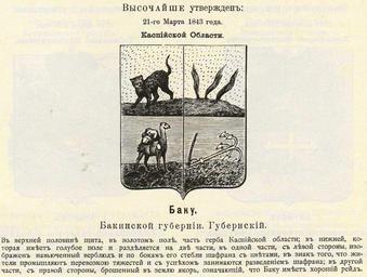 | Keywords: Баку 1843 из Винклера.jpg Official Russian Empire coat of arms Baku Ге б Российской Импе ии губе нского го ода Баку Бакинской губе нии в 1843 - Каспийской области с официальным описанием в Ге бовнике Винкле а П П фон-Винкле Ге бы го одов губе ний областей и посадов Российской Импе ии внесенные в Полное Соб ание законов с 1649 по 1900 год Дозволено цензу ою С -Пете бу г 20 Июля 1899 года Издание книгото говца Ив Ив Иванова С -Пете бу г Типог афия И Комелова П яжка д 3 1899 \ Scanned by Vizu 1843 \ 1899 published П П фон Винкле \ Pavel von Vinkler PD-old PD-RusEmpire PD-RU-exempt coats of arms Gerbovnik Vinklera - City CoAs Coats of arms of Baku Governorate Kaspii Oblast Camels in heraldry Fire in heraldry |
