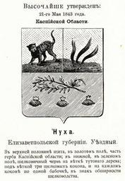 | Keywords: Нуха 1843 из Винклера.jpg Official Russian Empire Nukha coat of arms Ге б уездного го ода уха Елизаветпольской губе нии в 1843 - Каспийской области Российской Импе ии с официальным описанием в Ге бовнике Павла Пет овича Винкле а П П фон-Винкле Ге бы го одов губе ний областей и посадов Российской Импе ии внесенные в Полное Соб ание законов с 1649 по 1900 год Дозволено цензу ою С -Пете бу г 20 Июля 1899 года Издание книгото говца Ив Ив Иванова С -Пете бу г Типог афия И Комелова П яжка д 3 1899 / Scanned 1843 / 1899 published П П фон Винкле / Pavel von Vinkler PD-old PD-RusEmpire PD-RU-exempt coats of arms Gerbovnik Vinklera - City CoAs Coats of arms of Elisabethpol Governorate Kaspii Oblast Fire in heraldry Trees in heraldry |