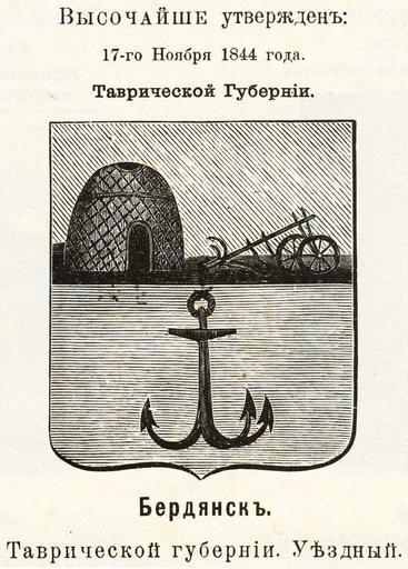 | Keywords: Бердянск 1844 из Винклера.jpg Official Russian Empire coat of arms Berdiansk Ге б Российской Импе ии уездного го ода Бе дянск Тав ической губе нии в Ге бовнике Винкле а П П фон-Винкле Ге бы го одов губе ний областей и посадов Российской Импе ии внесенные в Полное Соб ание законов с 1649 по 1900 год Дозволено цензу ою С -Пете бу г 20 Июля 1899 года Издание книгото говца Ив Ив Иванова С -Пете бу г Типог афия И Комелова П яжка д 3 1899 \ Scanned by Vizu 1844 \ 1899 published П П фон Винкле \ Pavel von Vinkler PD-old PD-RusEmpire PD-RU-exempt coats of arms Gerbovnik Vinklera - City CoAs Coats of arms of Tavria Governorate |