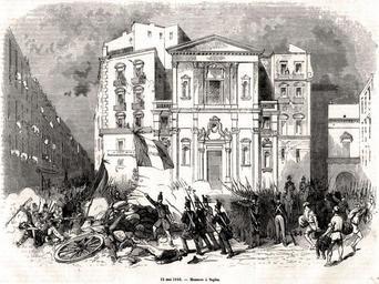 Keywords: 1848 napoli repressione dei moti.JPG en Neaples repression of 1848 patriotic revolution old print unknown - sconosciuto ~1870 Naples in the 19th century 1848 in Italy Via Toledo Naples Italian Risorgimento Anonymous-EU