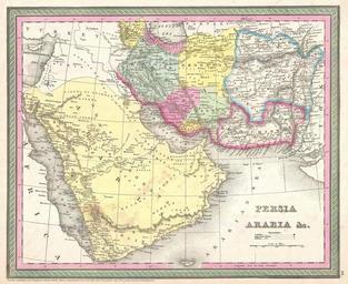 | Keywords: 1850 Mitchell Map of Arabia, Persia, Afghanistan - Geographicus - Arabia-mitchell-1850.jpg A fine example of S A Mitchell Sr 's important c 1850 map of Arabia Persia and Afghanistan Covers the region from the Mediterranean and Red Sea eastward as far as India including all of modern day Saudi Arabia Israel Jordan Syria Iran Iraq Kuwait Afghanistan and parts of Pakistan Mitchell offers a wealth of detail throughout identifying mountains deserts rivers springs caravan routes cities towns forts and an assortment of additional political and topographical elements Map is hand colored in pink green yellow and blue pastels to define national and regional boundaries Cartographically this is an enlarged updated and revised version of a similar map first issued by Tanner in 1836 Dated and copyrighted 1850 by Thomas Cowperthwait co in the Clerk ™s office of the District Court of the Eastern District of Pennsylvania Published by S A Mitchell for inclusion as plate no 68 in the c 1850 dated Size in 15 5 12 5 object history credit line accession number Arabia-mitchell-1850 Mitchell Sr S A <i>A New Universal Atlas Containing Maps of the various Empires Kingdoms States and Republics Of The World </i> 1850 issue Geographicus-source PD-old-100 Assessments 1 Maps by Samuel Augustus Mitchell Old maps of the Middle East Old maps of Afghanistan 1850 maps Maps of Iran Maps in English Old maps showing the whole Near East Maps of Saudi Arabia |