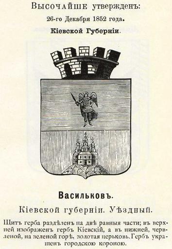 | Keywords: Васильков 1852 из Винклера.jpg ru Ге б Василькова Киевской губе нии 1853 года с описанием из ге бовника Винкле а Ге б Василькова Київської губе нії 1853 оку з описом з ге бовника Вінкле а adopted January 7 1853 December 26 1852 published 1899 File Василь Васильков Везенбе г Венсенштейн из Винкле а jpg П П фон Винкле PD-RusEmpire <gallery>File Coat_of_arms_of_Vasylkiv png</gallery> Gerbovnik Vinklera - City CoAs Васильков Coats of arms of cities in Kiev Governorate Saint Michael in heraldry Churches in heraldry Vasylkiv |
