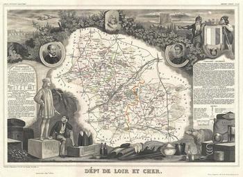 | Keywords: 1852 Levasseur Map of the Department de Loir-et-Cher, France (Loire Valley Wine Region) - Geographicus - LoirEtCher-levasseur-1852.jpg This is a fascinating 1852 map of the French department Loir-et-Cher France This area is mainly known for its production of Selles-sur-Cher a fine goats-milk cheese The whole is surrounded by elaborate decorative engravings designed to illustrate both the natural beauty and trade richness of the land There is a short textual history of the regions depicted on both the left and right sides of the map Published by V Levasseur in the 1852 edition of his Atlas National de la France Illustree 1852 undated Size in 16 5 11 5 object history credit line accession number LoirEtCher-levasseur-1852 Levassuer V <i>Atlas National Illustre des 86 Departements et des Possessions de La France Divise par Arrondissements Cantons et Communea avec La Trace de Toutes Les Routes Chemins de fer et Canaux </i> 1852 edition Geographicus-source PD-old-100 1852 maps France Old maps of Loir-et-Cher Pierre de Ronsard Louis XII of France Maps in French France Victor Levasseur - Maps of France France |