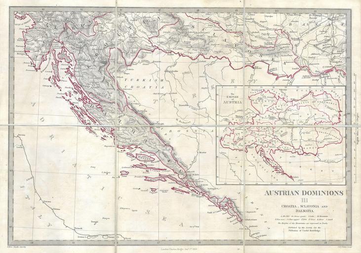 | Keywords: 1852 S.D.U.K. Pocket Map of the Balkans, Croatia, Dalmatia, Sclavonia - Geographicus - AustrianDominionsIII-Knight-1852.jpg This is a S D U K map of a rarely depicted portion of Europe including most of modern day Croatia Depicts the south part of the Austrian Empire including Dalmatia Croatia and Sclavonia A large inset shows the full extent of the Austrian empire This is an unusual issue of an unusual map as it has been broken into pocket map format six sheets and backed with linen This map was probably for inclusion in a library collection Engraved by Weller for the Society for the Diffusion of Useful Knowledge under the Supervision of Charles Knight dated Jan 1 1852 1852 Size in 16 11 object history credit line accession number AustrianDominionsIII-Knight-1852 Geographicus-source PD-art Old maps of Slavonia Maps of the Croatia-Slavonia Maps of the history of Dalmatia Old maps of Croatia 1852 maps Old maps of Serbia Old maps of Vojvodina Old maps of Bosnia and Herzegovina |