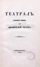 Keywords: РГБ: Греч, Николай Иванович (1787-1867). Театрал : Карм. книжка для любителей театра. - Санкт-Петербург : тип. Н. Греча, 1853. - [1], 122 с., 1 л. фронт. (ил.), 11 л. ил.; 21. Авт. в кн. не указан; установлен по изд.: Рус. аноним. и подпис. псевд. произведения печати, 1801-1926. Л., 1979. Вып. 3. С. 43; по Каталогу РНБ <a href="http://dlib.rsl.ru/rsl01003000000/rsl01003600000/rsl01003600051/rsl01003600051.pdf" rel="nofollow">dlib.rsl.ru/rsl01003000000/rsl01003600000/rsl01003600051/...</a> 1853 rsl russianstatelibrary ргб историярусскоготеатра historyofrussiantheatre театрал гречни