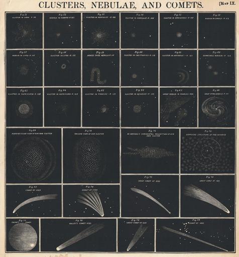 Keywords: 1856 Burritt - Huntington Chart of Comets, Star Clusters, Galaxies, and Nebulae - Geographicus - Comets2-burritt-1856.jpg This rare chart of comets star clusters and nebula was engraved W G Evans of New York for Burritt ™s Atlas to Illustrate the Geography of the Heavens Notes several important comets recorded in the previous 300 years including the Comet of 1689 the Comet of 1744 The Great Comet of 1680 the Great Comet of 1811 Halley ™s Cement the Great Comet of 119 and the Comet of 1843 Also shows several well known nebulas including the Horse Shoe Nebula the Spiral Nebula and the Dumb Bell Nebula This unusual chart appeared in the 1856 edition of Burritt ™s Atlas and was not present in earlier edition 1856 dated Size in 13 5 14 5 object history credit line accession number Comets2-burritt-1856 Burritt E <i>Atlas Designed to Illustrate Burritt's Geography of the Heavens</i> 1856 edition Geographicus-source PD-art Astronomical object comparisons Drawings of astronomical objects Star clusters Nebulae Comets Great Comet of 1811 |