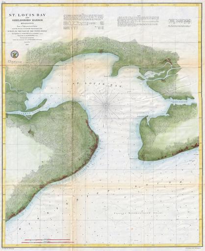 | Keywords: 1857 U.S. Coast Survey Map of St. Louis Bay and Shieldsboro Harbor, Mississippi - Geographicus - StLouisBayMS-uscs-1857.jpg  An attractive hand colored 187 U S Coast Survey triangulation chart or map of St Louis Bay Mississippi Details the area around St Louis Bay including the town of Shieldsboro modern St Louis Bay and Pass Christian Mississippi Details to the level of individual buildings showing many of the wharves and piers in both communities Shows the Jordan River as well as the Bayou Portage Square Handkerchief Shoal is noted Depth soundings throughout The hand color work on this beautiful map is exceptionally well done The triangulation for this map was completed by J E Hilgard and S A Gilbert The topography was accomplished by W Greenwell The hydrography is the work of a party under the command of B F Sands This map was compiled under the direction of A D Bache Superintendent of the Survey of the Coast of the United States and one of the most influential American cartographers of the 19th century 1857 dated Size in 19 23 object history credit line accession number StLouisBayMS-uscs-1857 <i>Report of the Superintendant of the U S Coast Survey </i> 1857 edition Geographicus-source PD-art United States Coast Survey maps 1857 maps Old maps of Mississippi Bay St Louis Mississippi |