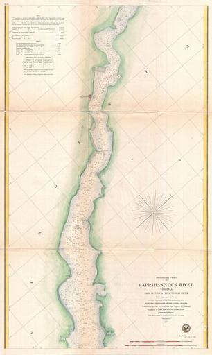 | Keywords: 1857 U.S. Coast Survey Map or Chart of the Rappahannock River, Virginia - Geographicus - RappahannockRiver-uscs-1857.jpg An attractive hand colored 1857 U S Coast Survey nautical chart or map of Virginia ™s Rappahannock River Covers the course of the Rappahannock River from Occupacia Creek to Deep Creek Offers countless depth soundings and navigational notes but little inland detail However it does identify the town of Tappahannock in the western shore The Rappahannock River which extends westward into Virginia from the southern part of the Chesapeake Bay was an important trade artery and boundary since the early colonial period Shortly after this map was produced the Rappahannock would become a major point of contention in the American Civil War with the Union controlling its northern shores and the Confederacy the its southern The hand color work on this beautiful map is exceptionally well done The triangulation for this chart was accomplished by Captain W R Palmer of the Topological Engineers The Topography is the work of John Seib and I Hull Adams The Hydrography was completed by R Wainwright Compiled under the direction of A D Bache Superintendent of the Survey of the Coast of the United States and one of the most influential American cartographers of the 19th century 1857 dated Size in 17 29 object history credit line accession number RappahannockRiver-uscs-1857 <i>Report of the Superintendant of the United States Coast Survey </i> Washington 1857 edition Geographicus-source PD-art United States Coast Survey maps 1857 maps Old maps of Virginia Rappahannock River |