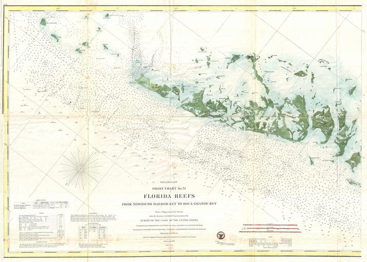 | Keywords: 1859 U.S. Coast Survey Map or Nautical Chart of the Florida Keys and Key West - Geographicus - FloridaKeyWest-uscs-1859.jpg A very attractive example of the rare 1859 U S Coast Survey Map the western Florida Keys Centered on Key West this map covers from Ramrod Key in the east to Boca Grande Key in the west All of the Islands are named but only Key West shows any inland development There are countless depth soundings throughout and various channels and shoals are noted The triangulation for this chart was completed by J E Hilgard Jas Totten J Rockwell and J A Sullivan The topography is the work of R M Bache L Hull Adams C T Jardella S A Wainwright and T W Door The hydrography was accomplished by John Rodgers and T A Craven The whole was completed under the direction of A D Bache one of the most influential and prolific Superintendents of the U S Coast Survey Published in the 1859 edition of the Superintendent ™s Report to congress 1859 dated Size in 31 5 22 5 object history credit line accession number FloridaKeyWest-uscs-1859 <i>Report of the Superintendent of the United States Coast Survey</i> Washington D C 1859 Geographicus-source PD-art United States Coast Survey maps Old maps of the Florida Keys 1859 maps |