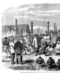 | Keywords: 1863 Meeting of Settlers and Maoris at Hawke's Bay, New Zealand - Left.png from Page 446 of the October 31 1863 The Illustrated London News MEETING OF SETTLERS AND MAORIS AT HAWKE'S BAY NEW ZEALAND The Engraving on page 436 represents a large meeting of the European and Maori inhabitants of the province of Hawke's Bay New Zealand held at the Pah Whakairo a native village about ten miles from Napier on the 20th of July last It is taken from several views of the meeting photographed by Mr Charles H Robson Mr Grindle Government interpreter at Napier has obligingly furnished us with some particulars of the meeting and of the condition and general conduct of the Maoris in that settlement at this juncture full of interest Throughout the whole of the disturbances so frequent of late years in New Zealand he says that the natives of that part of the country have always maintained the strictest neutrality and evinced an earnest desire to cultivate the good will and friendship of the settlers Even in times of strife and bloodshed their conduct has ever been marked by an anxiety to respect the lives and property of their white neighbours This feeling was strongly exemplified in the years 1857-8 during the feud between the Hapuku and the Moananui two rival chiefs of the province At that period although the contending tribes were often hard-pushed for provisions the sheep and cattle of the settlers grazed quietly in the vicinity of the fortified villages and not a single one was ever known to be missing; and the settlers themselves were earnestly warned to avoid approaching too near the contending parties whilst engaged lest some one might be injured by a stray bullet This quarrel had its origin in disputes and jealousies arising from the sale by one of the chiefs in question of blocks of land to the Government which according to native custom implicated the Government also as the purchasing party Their conduct therefore towards the settlers on that occasion certainly evinced a remarkable degree of forbearance for men of untutored minds sic At a later date when the famous King movement was fast gaining ground and many tribes were pledged to is support these people although professedly in favour of the movement uniformly retained their resolution to preserve peaceful relations with their European neighbours And at the present crisis in New Zealand whilst the powerful and warlike tribes of the Waikatos with whom the King movement originated are at war with the Government and their emissaries continually traversing the country exciting and urging the tribes to revolt the people of Hawke's bay remain steady in their resolution to preserve peace in their own district and publicly declare that although morally supporting the confederation of the tribes for the maintenance of their nationality they will if necessary resist by force any attempt of other tribes to disturb the peace of the province The meeting represented in our Engraving was called for the purpose of celebrating the completion of a large flour mill erected by the natives of the district with the assistance of the Government at the Pawhakairo village The Europeans were invited to attend to afford each party an opportunity of expressing to the other their doubts and fears in the present aspect of affairs in the country A large company assembled amongst whom were many ladies and gentlemen from the town of Napier and Donald M'Lean Esq the Superintendent of the Province This gentleman was for many years at the head of the Native Department under the general Government of the colony and is a man of great experience in all matters affecting the natives Possessing the entire confidence of both races and a perfect knowledge of the Maori language and character no man could be better adapted to allay the feelings of distrust naturally awakened in the breasts of these bold and warlike people by the stirring events passing in other parts of the colony Many chiefs representatives of various tribes addressed the meeting and all expressed their unaltered determination to live in peace and amity with their white neighbours But they said the measures then being taken by the local Government gave them much uneasiness Why said they are stockades being erected and men being drilled There can be no necessity for these preparations here We have always been your friends and have never given you cause to be suspicious of us nor have we ever mistrusted you; but now we are in doubt as to the meaning of these proceedings They were answered by his Honour the Superintendent who informed them that the militia were called out pursuant to instructions from the Governor; that this was usual amongst Englishmen in every country even in times of peace; that it had already been done in every other province in the island; that warning letters were continually being received from loyal natives in other districts of meditated attacks upon the town of Napier by the Waikatos now in arms against the Government together with other disaffected tribes; and that the stockades therefore and all the other preparations had no reference whatsoever to them but were merely precautionary measures to guard against threatened incursions of hostile tribes His Honour spoke at some length and the result was that the natives were fully satisfied and a paper was drawn up by them and signed by all the principal chiefs declaring their fixed determination to maintain peace in the province and to assist the Pakehas in repelling any hostile tribes This together with the speeches of the chiefs was afterwards published in a local newspaper printed in the Maori language called the Waka Maori o Ahuriri or the Maori Canoe of Ahuriri The gentleman near the centre of the engraving with his head uncovered is Mr M'Lean the Superintendent of the province At his feet is an aged chief named Porokuru seated in a wheelbarrow in which he had been conveyed to the spot being unable either to walk or stand erect fr