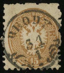 | Keywords: 1864 Brody 15k typRSb-f.jpg en Austria KK 15 kreuzer Stamp issue 1864 cancelled BRODY Galicia now in Ukraine Mueller typeRSb-f 2013-05-28 17 20 26 own Jacquesverlaeken Scanned object >100 years old cc-zero 1863 stamps of Austria Postmarks of Ukraine 1850-1919 Uploaded with UploadWizard History of Brody Postmarks of Lviv Oblast Animals on stamps to be categorised by country |