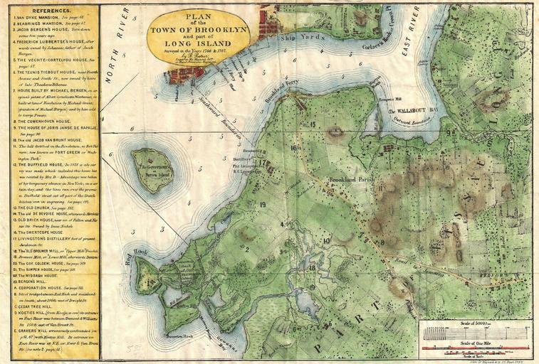 | Keywords: 1867 Stiles Map of Brooklyn, New York - Geographicus - BrooklynTwn-stiles-1867.jpg A rare and very attractive plan of Brooklyn New York drawn in 1867 by Samuel Edward Stiles Designed for Stiles ™ important History of Brooklyn this map is based upon surveys of Brooklyn originally taken in 1766 and 1767 by w Bernard Ratzer en Includes much of modern Brooklyn including parts of Red Hook Gowannas Fort Greene Williamsburg part of Greenpoint Brooklyn Heights Cobble Hill Carrol Gardens Park Slope Prospect Height Clinton Hill and Greenwood Offers superb detail to the level of individual buildings many of which are numbered and labeled in the interesting chart to the left of the map proper Interestingly this chart notes both 18th century building locations as well as their 1867 street locations “ many of which are consistent to modern times Includes the Van Dyke Mansion the Seabrings Mansion the Jacob Bergen House the Frederick Lubbertse House the Vechte-Cortelyou House the Teunis Tiebout House the Michael Bergen House the Cowenhoven House the Jorse Janse de Rapalje House the Jacob Ban Brunt House the Duffield House the OldChurch the De Bevoise House the Old Brick House the Swertcope House the Livingston Distillery the Old Brouwer Mill Brouwer Mill the Governor ™s Colden House the Bamper House the Middagh House Bergan ™s Hill a Coporration House Cedar Tree Hill Koeties Kill and Gravers Kill Drawn by Edward Stiles and engraved by Hayward and Company of 171 Pearl Street New York 1867 undated Size in 15 5 11 object history credit line accession number BrooklynTwn-stiles-1867 Stiles S E <i>History of the City of Brooklyn Vol 1</i> page 62 Geographicus-source PD-art Old maps of Brooklyn New York City 1867 maps Brooklyn Cobble Hill Brooklyn |