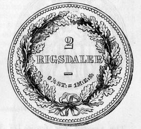 | Keywords: 1868 Danish 2 rigsdaler reverse.png A Danish silver two rigsdaler piece of 1868 with the head of Christian IX Weight 927 fineness 877 Value 4s 3/8d Reverse shown Engraving from the article Recent Coinage of the World in the Companion to the British Almanac of 1874 1874 Name of coin designer or engraver not known PD-old Both sides Obverse Coins of Denmark 1868 1868 coins Christian IX of Denmark on coins | ||||