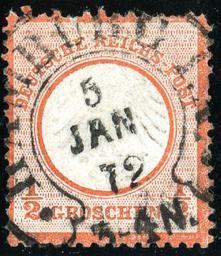 | Keywords: 1872 Reich Mi3 Hamburg.jpg en Stamp of Germany first issue 1872 1/2 Groschen early Hufeisen cancelled at HAMBURG January 5 1872 Michel 3 2013-12-14 13 22 46 own Jacquesverlaeken Scanned object > 100 years old cc-zero Uploaded with UploadWizard 1872 stamps of the German Empire Postmarks of Hamburg |