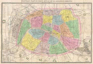 | Keywords: 1878 Logerot Map of Paris, France - Geographicus - Paris-logerot-1878.jpg An extremely large 1878 pocket of Paris by A Logerot Covers the walled center of Paris as well as its immediate vicinity including the Bois de Boulogne and Bois de Vincennes All streets and many important buildings are noted throughout Color coded by arrondissement All text in French This map was first issued by Logerot in 1859 and updated annually through the 1880s This is the 1878 edition drawn by Ch Smith It was originally purchased by A H Green from F W Christern a stationer and bookseller established at University Place New York A H Green whose signature appears inside the front panel of the original binder acquired this map in preparation for his European Tour Though most maps are without substantial provenance this map is known to have been originally purchased for the European tour of the prominent 19th century New Yorker Andrew Haswell Green 1820 - November 13 1903 A H Green was a New York lawyer city planner civic leader and agitator for reform Called by some historians a hundred years later the 19th century Robert Moses he held several offices and played important roles in many New York projects including the development of Riverside Drive Morningside Park Fort Washington Park and Central Park His last great project was the consolidation of the Imperial City or City of Greater New York from the earlier cities of New York Brooklyn and Long Island City and still largely rural parts of Westchester Richmond and Queens Counties In 1903 Green was murdered in a case of mistaken identity He is buried in Worcester In 1905 his family estate in Worchester was turned into a public park Green's personal effects and other belongings were stored for over 100 years until recently being rediscovered and offed for sale 1878 dated Size in 41 29 object history credit line accession number Paris-logerot-1878 Geographicus-source PD-art Maps of Paris in the 19th century 19th-century maps of Paris Old locator maps of arrondissements of Paris 1878 maps 1878 in Paris |