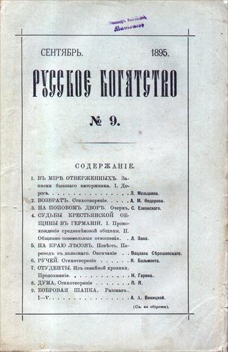 | Keywords: Русское Богатство, 1895.jpg Обложка жу нала Русское богатство 1895 г Transferred from http //ru wikipedia org ru wikipedia<br/> Original text собственная абота скани ованное изоб ажение октяб ь 2008 г <br/> 2008 10 31 first version ; 2008 10 30 last version олодцов Александ ихайлович Original uploader was Triumphato at http //ru wikipedia org ru wikipedia Released into the public domain by the author ru wikipedia Triumphato original upload log page ru wikipedia D0 A0 D1 83 D1 81 D1 81 D0 BA D0 BE D0 B5_ D0 91 D0 BE D0 B3 D0 B0 D1 82 D1 81 D1 82 D0 B2 D0 BE 2C_1895 jpg 2008-10-31 04 14 Triumphato 591×914× 771863 bytes <nowiki> Изоб ажение Описание Обложка жу нала Русское богатство 2895 г Авто олодцов Александ ихайлович В емя создания октяб ь</nowiki> 2008-10-30 04 14 Triumphato 591×901× 565424 bytes <nowiki> Изоб ажение Описание Обложка жу нала Русское богатство 1895 г Авто олодцов Александ ихайлович В емя создания октяб �</nowiki> 1895 Magazines of Russia 1895 Cover of book scanned by Triumphato Russkoe bogatstvo |