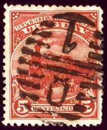| Keywords: 1895 Uruguay 5c Mi102.jpg en Stamp of Uruguay 5 centesimos issue 1895 engraved Postmark Q-1 in oval bars fr 10 c rouge Yvert N°105 de Zinnober 5 C Michel N°102 2014-05-04 19 30 05 own Jacquesverlaeken Scan of cancelled stamp engraved by Waterlow Sons cc-zero Engraved stamps Uploaded with UploadWizard Stamps of Uruguay 1895 Postmarks of Uruguay |