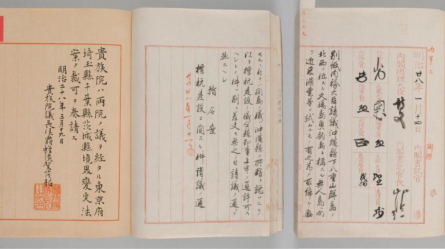 | Keywords: 1895senkaku.png en Japanese government's resolution on Senkaku Islands in January 14 1895 which stated that the island was to be incorporated into Okinawa Prefecture zh 1895年1 14日,日 政 內閣決議將久場島和魚釣島編入沖繩縣並建築航標 http //www tanaka-kunitaka net/senkaku/2a11rui715-1895/04 jpg http //www tanaka-kunitaka net/senkaku/2a11rui715-1895/05 jpg 日 政 1895-01-14 PD-Japan-oldphoto 經修剪和合併兩張 片 Documents of Senkaku Islands Letters of Japan | ||||