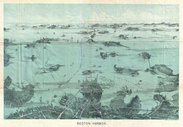 | Keywords: 1897 Walker View of Boston Harbor - Geographicus - Boston-walker-1897.jpg This is an attractive two color lithograph1897 view of Boston Harbor by George H Walker Co Covers Boston harbor in full with its many islands light houses forts and communities The map part of the map covers Boston South Boston and East Boston naming many individual streets and buildings Also shows Deer island Governor's Island Castle Island Thompson's Island Moon Island Squantum Long Island and countless others Shows steam ship routes between the island as well as ferry lines 1897 dated Size in 18 14 object history credit line accession number Boston-walker-1897 Geographicus-source PD-art Boston Harbor in the 19th century |