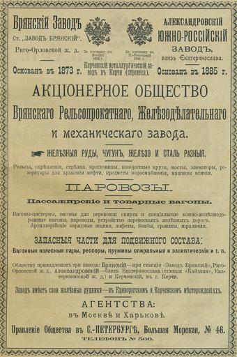| Keywords: Реклама Брянского завода, 1899.jpg ru Реклама АО Б янского завода 1899 год 2014-10-06 03 45 52 Весь Пете бу г на 1899 год Ад есная и сп авочная книга г С Пете бу га Издание А С Суво ина С 3 екламного блока Скани ование Владими Васильев other versions PD-old-70-1923 Uploaded with UploadWizard Advertisements in Russia 1900s advertisements П едп иятия Б янска |